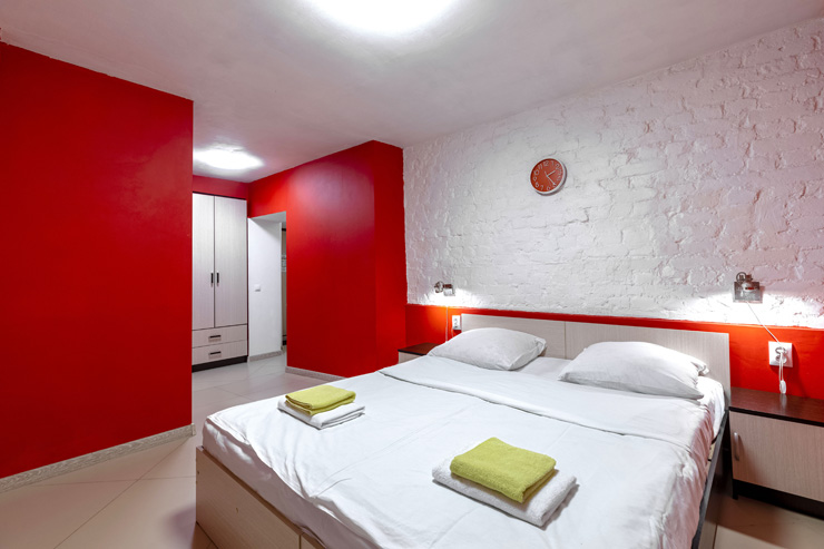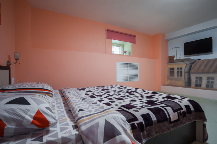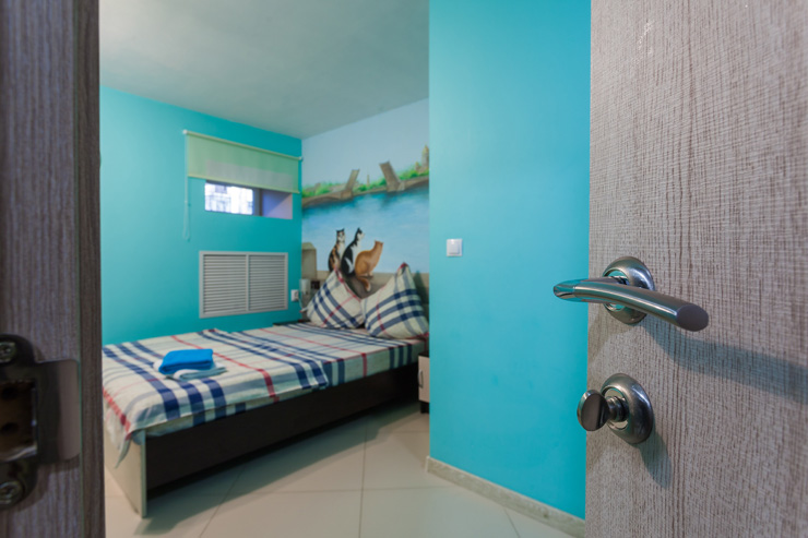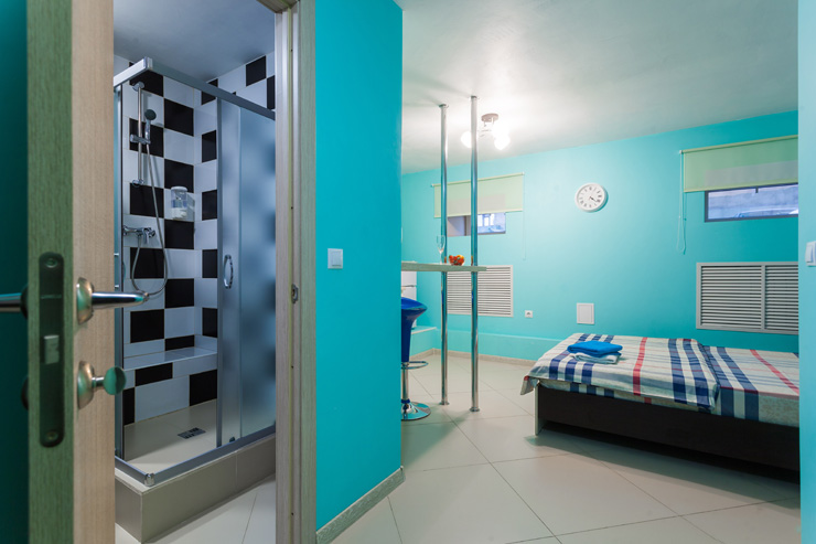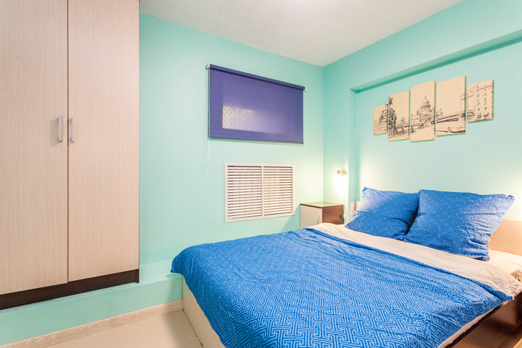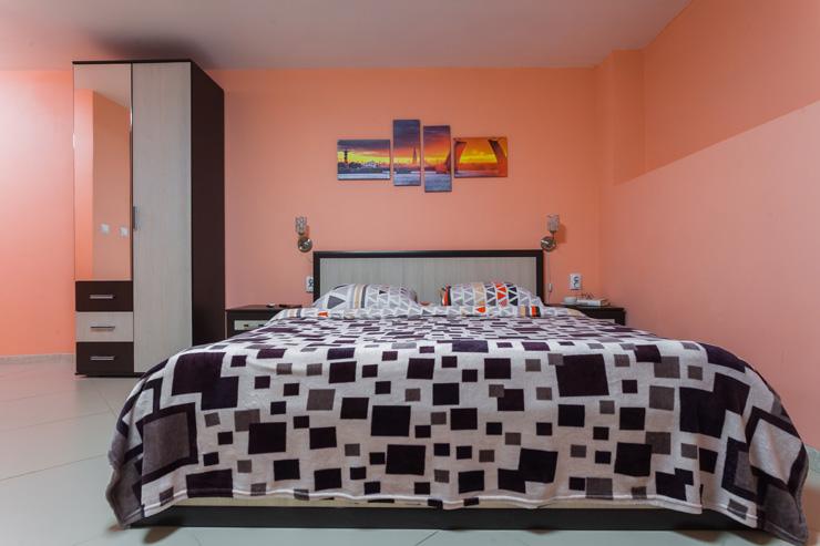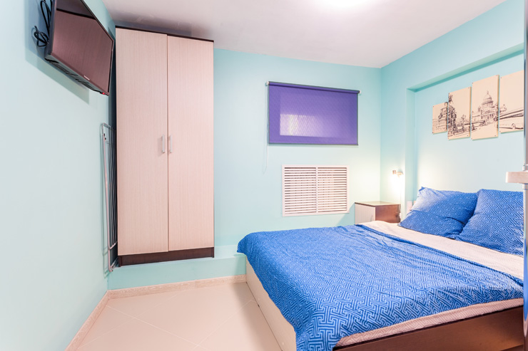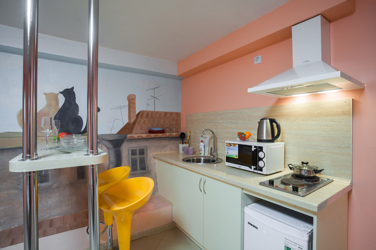 - Оборудование: гладильная доска, кондиционер, микроволновая печь, мини-холодильник, набор посуды, плита электрическая, стиральная машина, телевизор, утюг, электрочайник