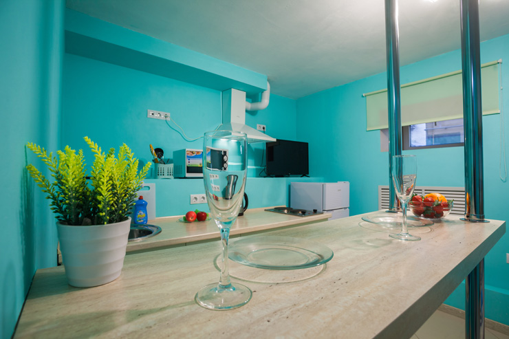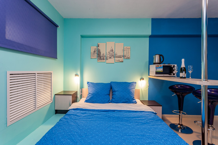 | Студия 2-местная №2 | 22 кв.м. | 2 чел. | Мебель (зеркало, кровать двуспальная, прикроватные тумбочки, стол, стулья, шкаф), Мини-кухня, Оборуд... | |