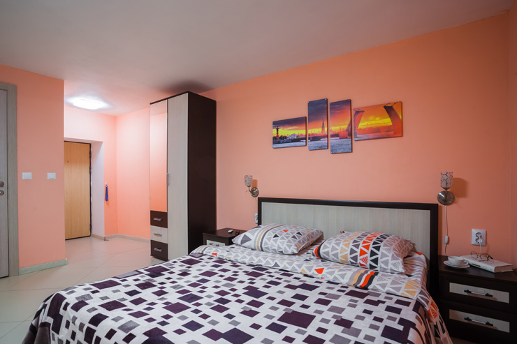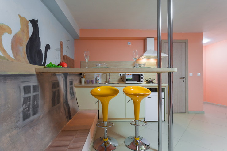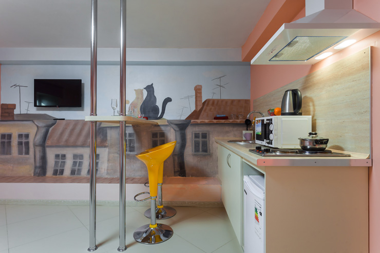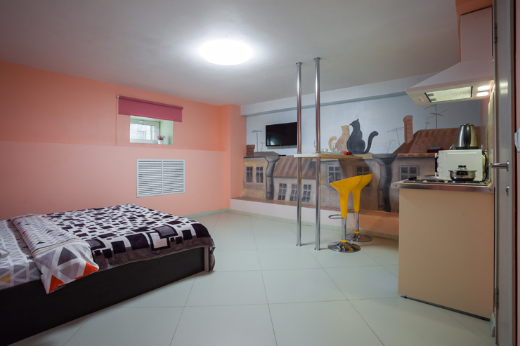 | Студия 2-местная №3 | 27 кв.м. | 2 чел. | Мебель (зеркало, кровать двуспальная, прикроватные тумбочки, стол, стулья, шкаф), Мини-кухня, Оборуд... | |