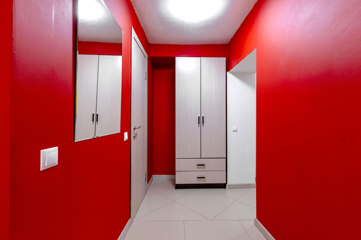 - Мебель: зеркало, кровать двуспальная, прикроватные тумбочки, стол, столик журнальный, стулья, шкаф